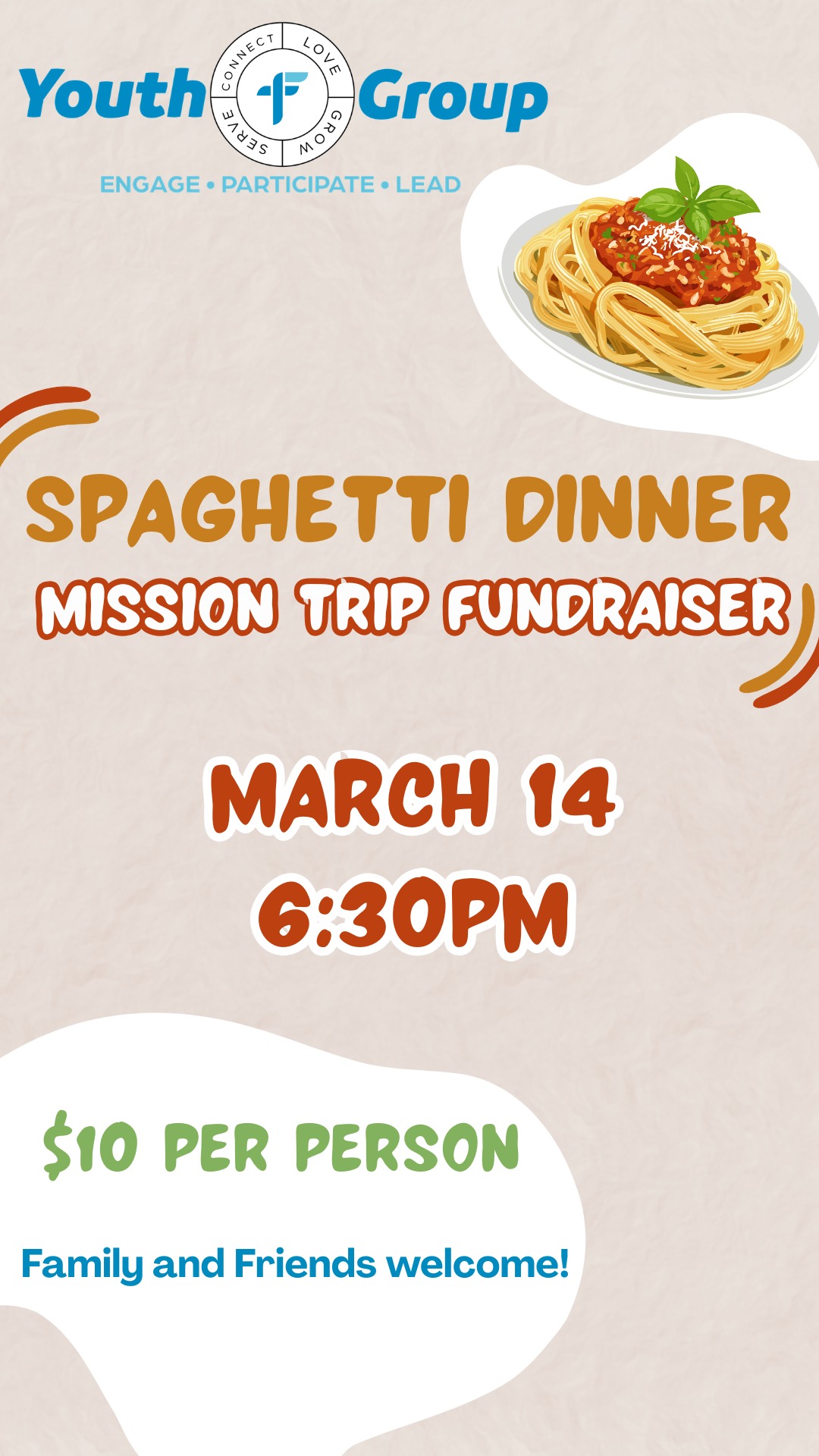 Thank you for supporting Florence Methodist Youth. Please use this form to RSVP for the Spaghetti Dinner Fundraiser. Cost is $10 per person aged 4 and up. Children under 4 are free. Cash or check will be accepted at the door.